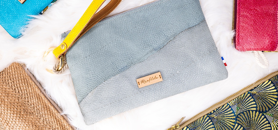 Ronflita est une marque française qui fabrique artisanalement des pochettes, sacs et accessoires, en pièce UNIQUE. Fait main en France, avec une attention particulière portée sur le choix des matières premières et des fournisseurs.